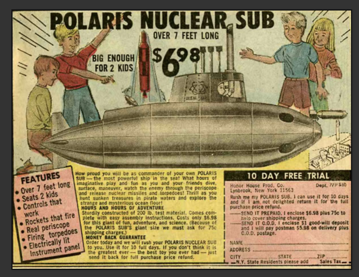 We made a periscope out of B&M baked bean cans and to christen the sub, like the Navy does with champagne, we borrowed a bottle of my dad’s Moxie and whacked it against the side for luck, which we sure as hell needed. We were a crew straight out of McHale’s Navy.